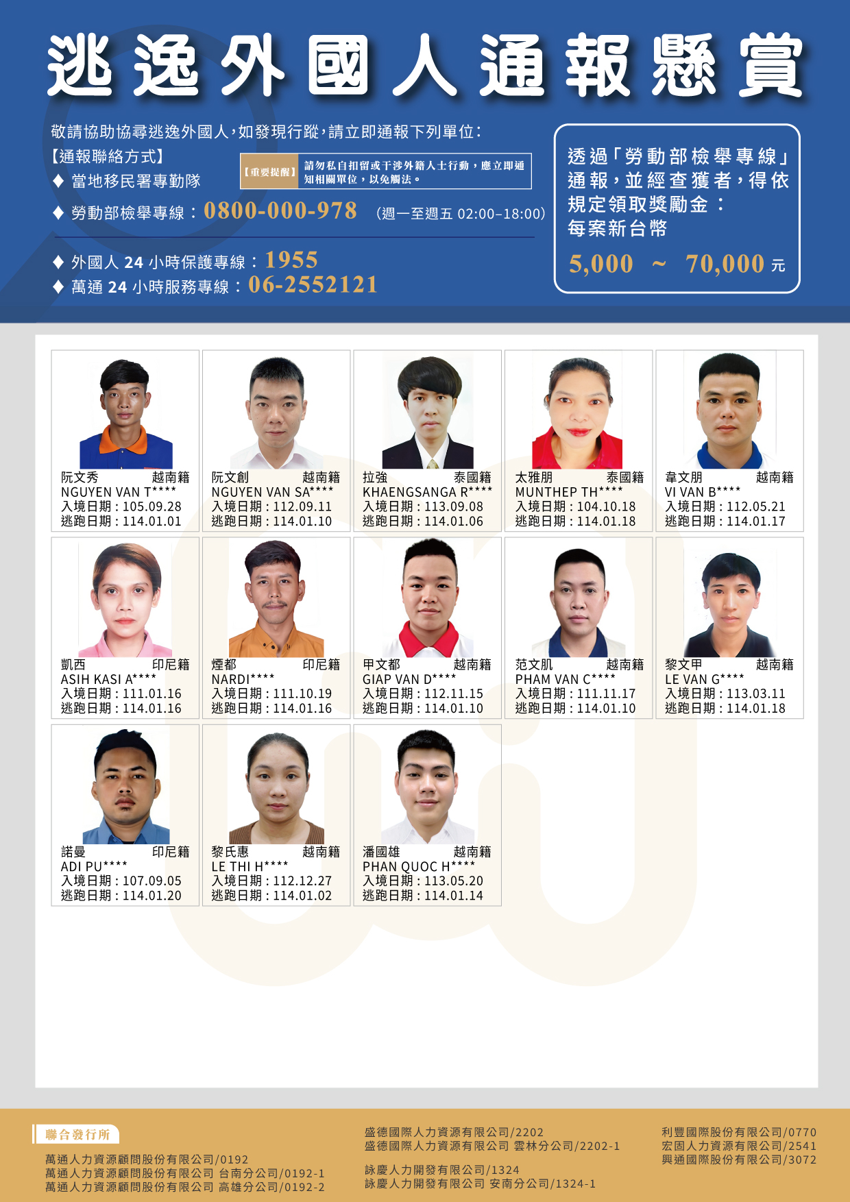 2025年1月|失聯外國人公報