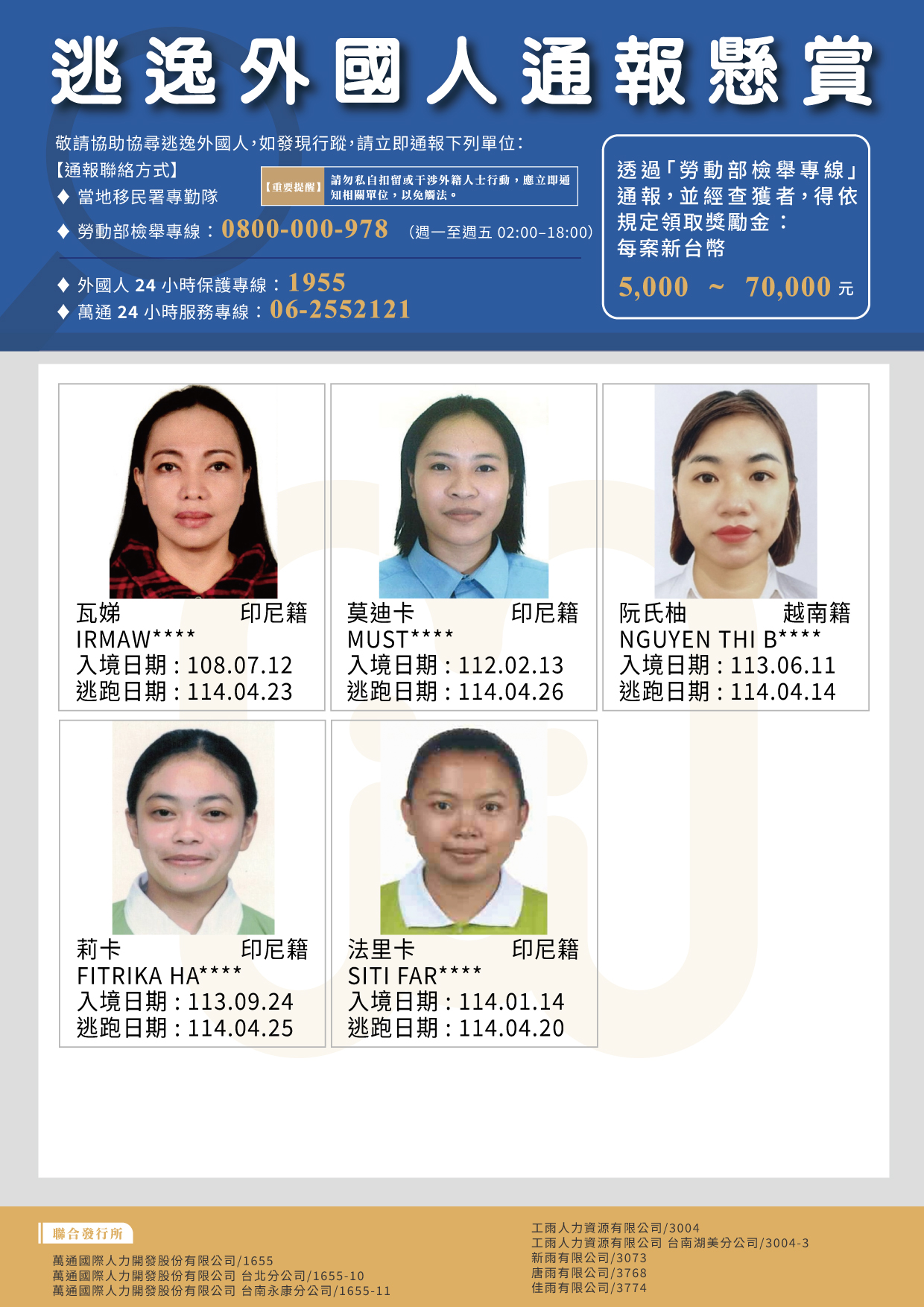 2025年4月|失聯外國人公報
