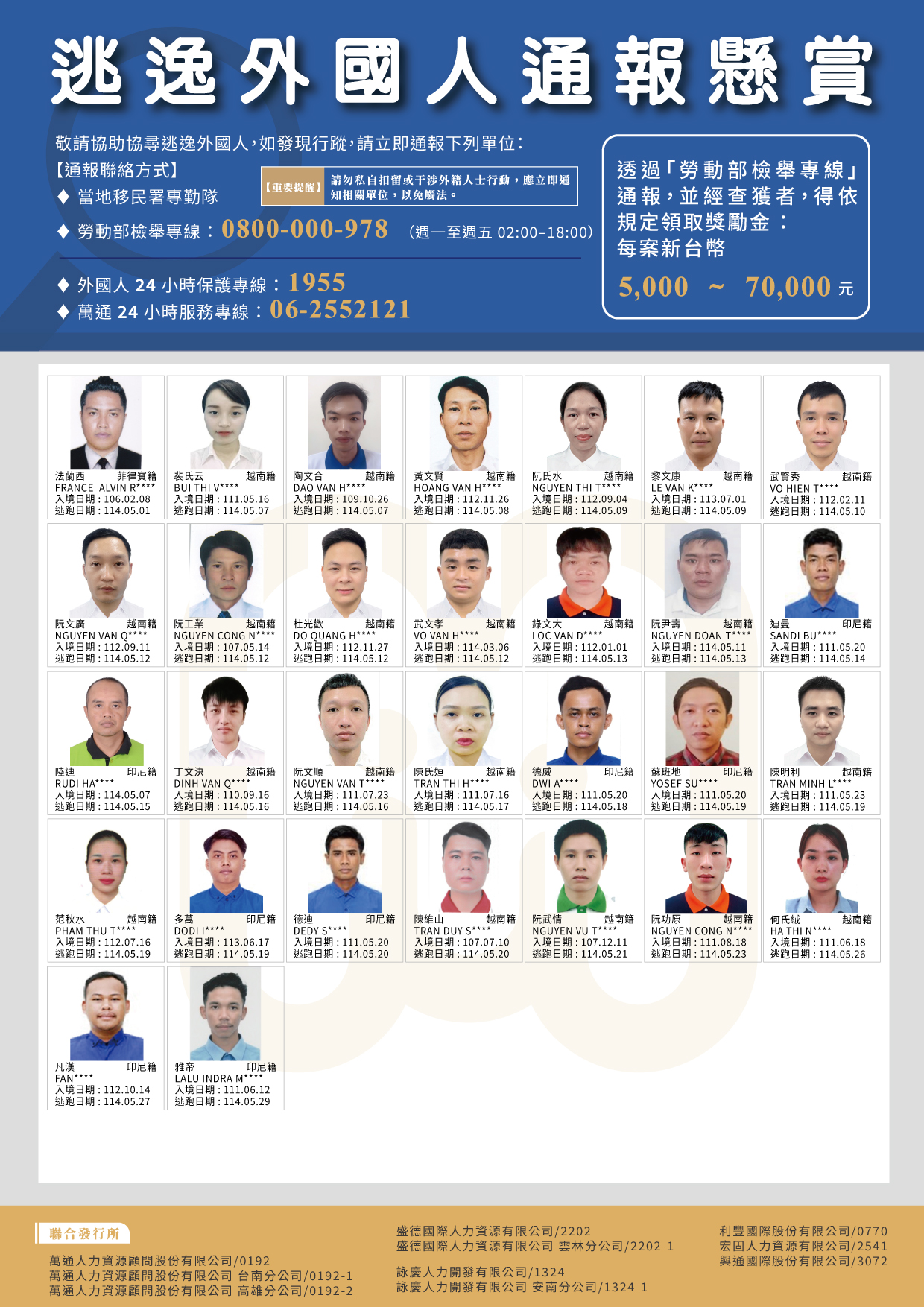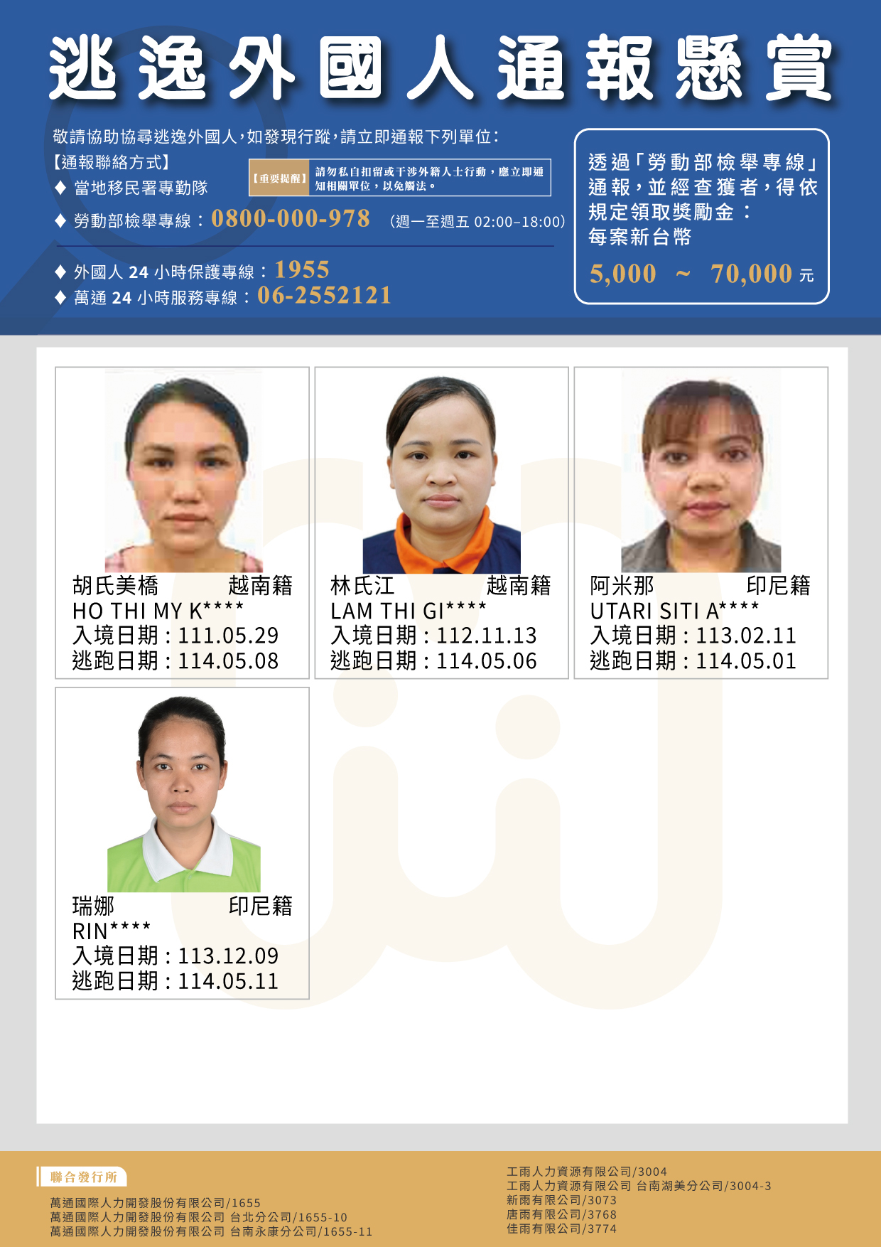 2025年5月|失聯外國人公報